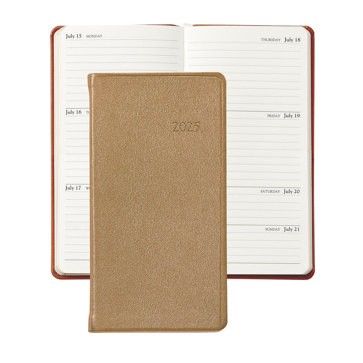 2025 6″ Pocket Journal Planner | White Gold Goatskin Leather
